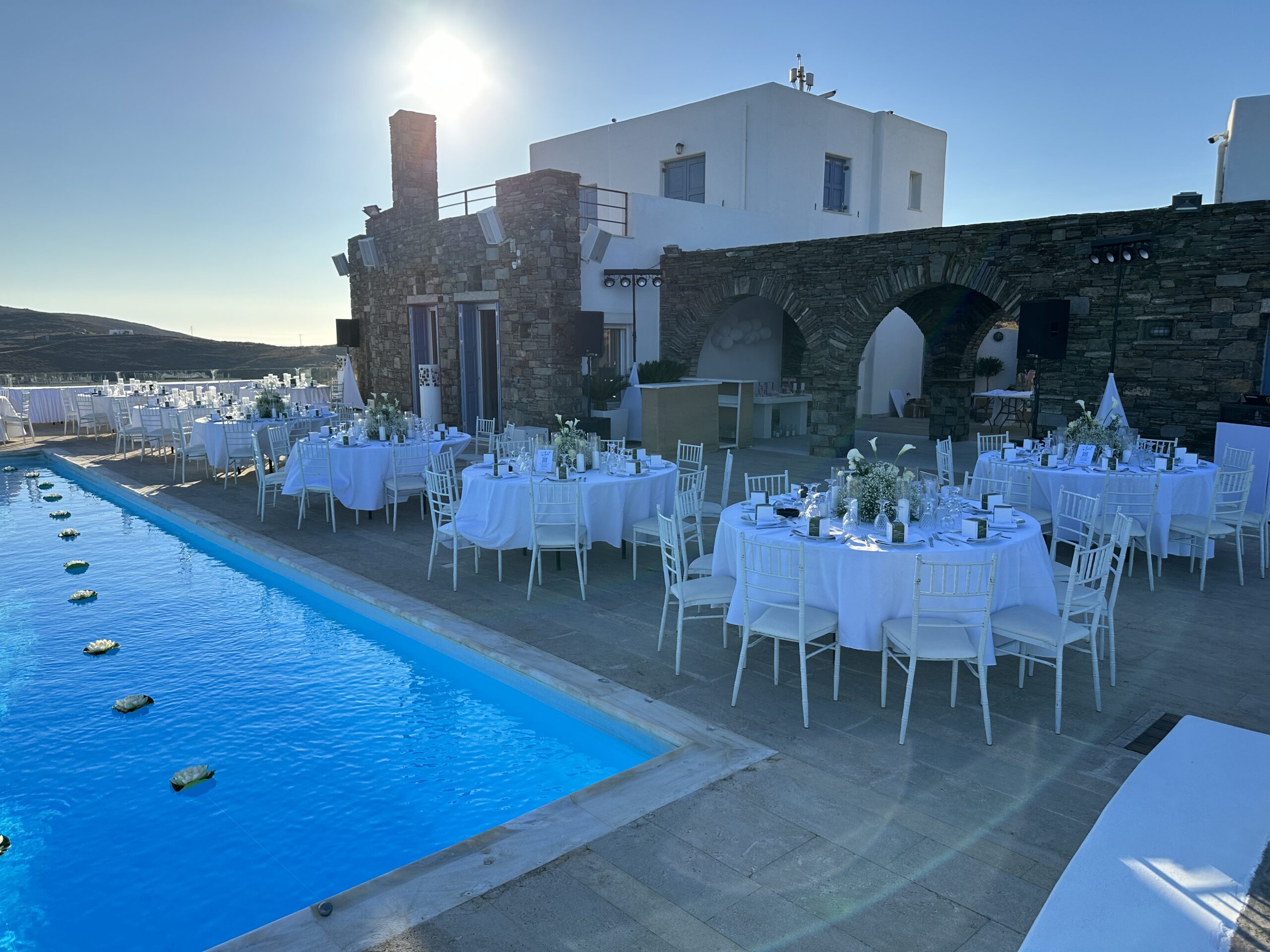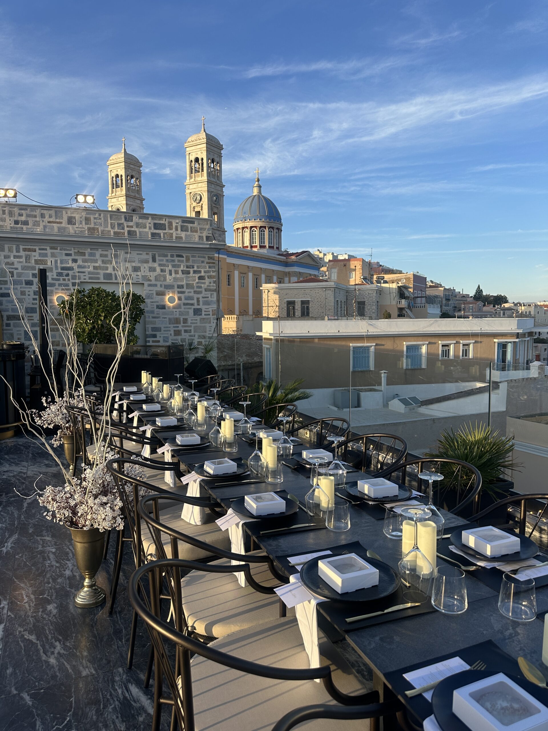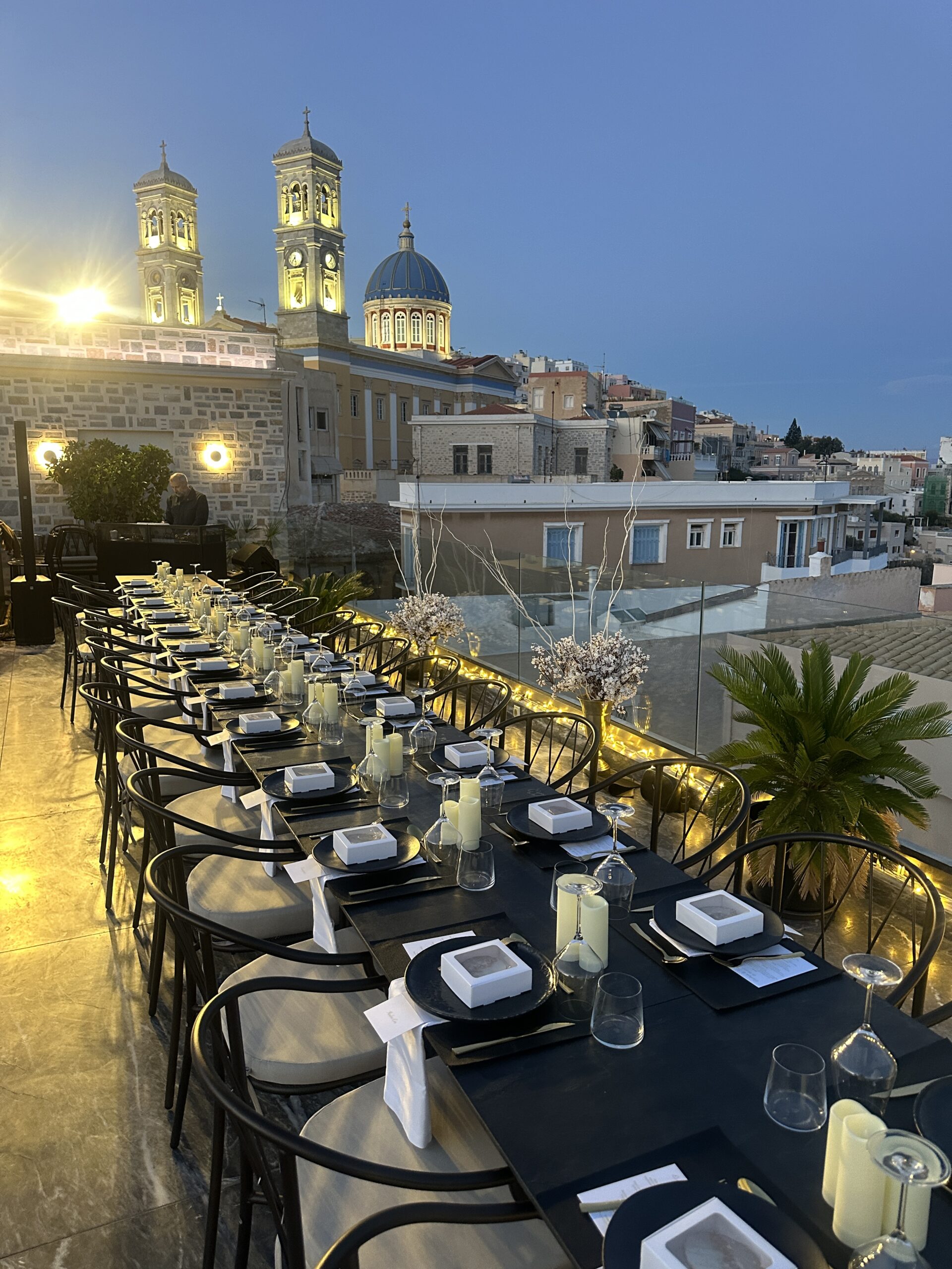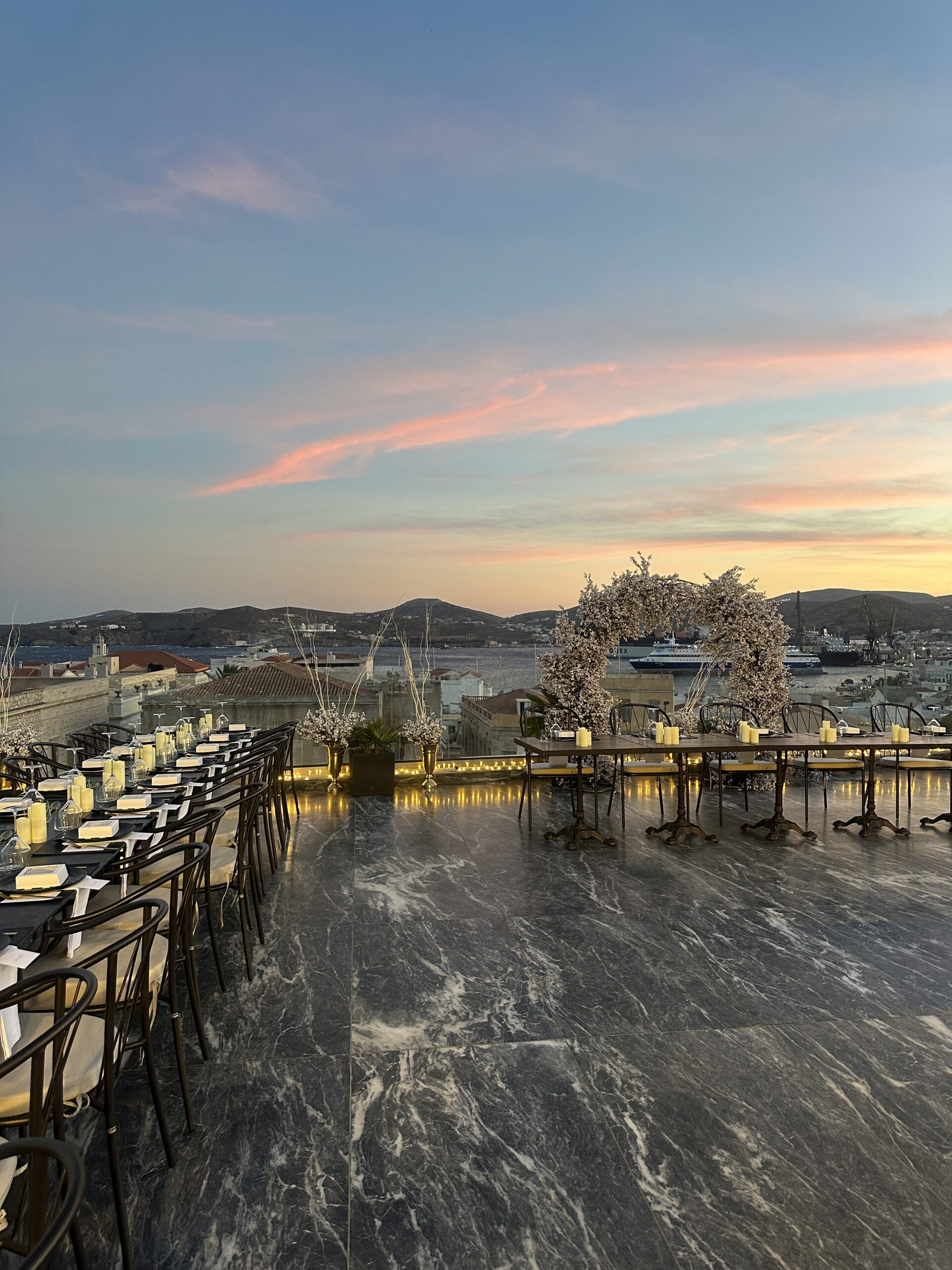 Ονειρεμένη δεξίωση με φόντο την πιο ειδυλλιακή θέα της Σύρου